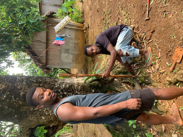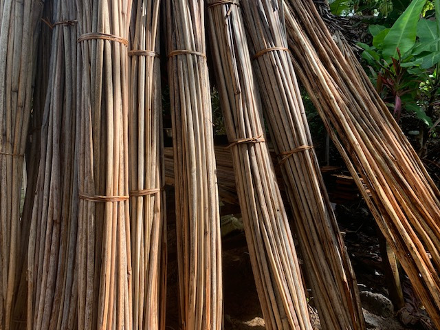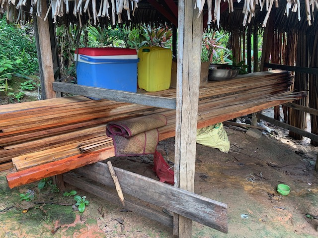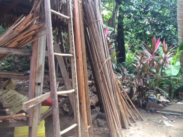 Après une étude de besoins, chacun a fait en sorte que l'ensemble du matériel nécéssaire soit à la disposition de l'équipe de construction. le transport en pirogue étant assuré par Caelin, le neveu d'Odette.